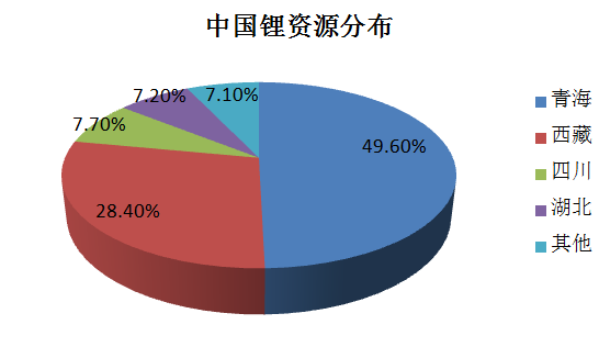 据了解,中国已成为锂资源消费大国,其中绝大多数的锂资源供给都依赖进口。调查显示,中国的锂资源较为丰富。世界锂资源探明储量约四千万吨,其中中国的探明储量就有540万吨。锂矿是我国的优势矿产,青海的盐湖里锂资源也很丰富。我国已探明的锂资源表现出高度集中的特点。主要集中在西部和中部地区,其中以青海、西藏最为突出,两者储量分别占全国总储量的49.6%和28.4%,资源集中度高。